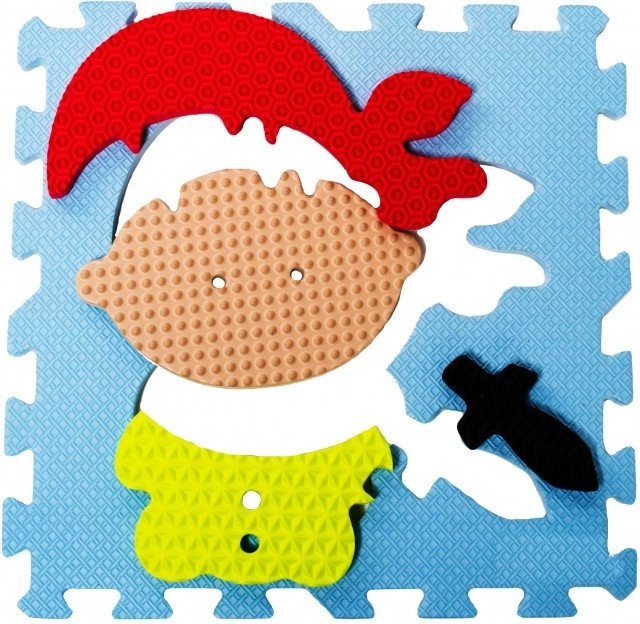 De mat dient tegelijk als educatief speelgoed: kinderen oefenen de fijne motoriek bij het plaatsen van de stukjes, ontwikkelen hun verbeeldingskracht met piratenverhalen en ontdekken verschillende texturen voor een rijkere sensorische ervaring. De samenstelling is veilig – vrij van ftalaten, cadmium, ammoniak en formaldehyde.