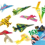 Maak je eigen papieren vliegtuig en beleef volop plezier! Deze creatieve set bevat alles wat je nodig hebt om tot wel 16 modellen te bouwen. Kies een design uit de sjablonen, vouw het vliegtuig en versier het met stickers. Ideaal voor de ontwikkeling van fijne motoriek en creativiteit. Tot 16 vliegtuigen in één verpakking, eenvoudig vouwen en leuk versieren voor kinderen vanaf 6 jaar.