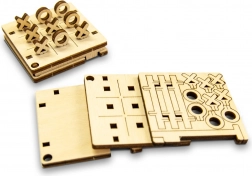 WOODEN CITY 3D puzzel spel mini Boter‑Kaas‑en‑Eieren variant 1