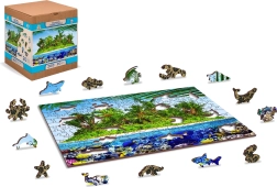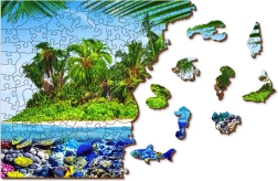 Deze hoogwaardige houten puzzel van HDF-plaat met een dikte van 3–4 mm zal alle puzzelliefhebbers bekoren die op zoek zijn naar een originele uitdaging. Dankzij de dubbelzijdige 2-in-1 uitvoering kun je puzzelen op basis van het beeld van een tropisch paradijs of volgens het herhalende patroon op de achterkant, dat je verbeeldingskracht zal testen.