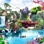 Houten puzzel Watervallen in de Japanse tuin