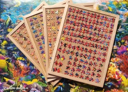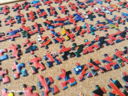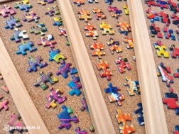 Praktische en veilige oplossing voor het leggen en opslaan van puzzels. Ondergrond van kurk en karton met houten frame houdt de stukjes op hun plaats.