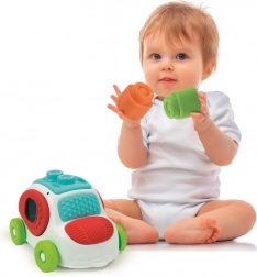 Het plastic autootje fungeert als praktische opbergdoos, zodat de blokken niet kwijtraken. Het speelgoed is ideaal voor vroege ontwikkeling en veilige sensorische stimulatie – de blokken kunnen ook in water gebruikt en in de vaatwasser gewassen worden, wat de hygiëne en het onderhoud vergemakkelijkt.
