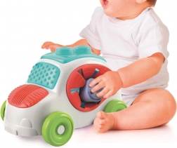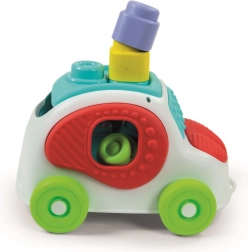 Het deksel van het autootje met openingen dient als sorteervorm. Kinderen leren basisvormen en kleuren herkennen en trainen de oog-handcoördinatie.