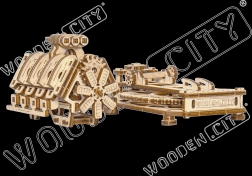 Het model is gemaakt van hoogwaardige berkenmultiplex en wordt zonder lijm of speciaal gereedschap in elkaar gezet. Voor optimale werking wordt aanbevolen om de assen en tandwielen te waxen. De moeilijkheidsgraad is gemiddeld (3/5), dus geschikt voor geduldige beginners en gevorderde modelbouwers.