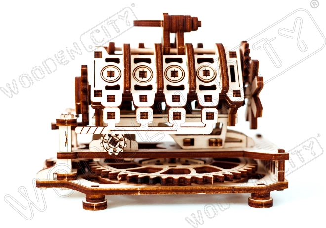 De houten 3D-puzzel van de V8-motor is een functioneel mechanisch model, geïnspireerd op motoren die ook in de Formule 1 worden gebruikt. De open constructie maakt het mogelijk om de ritmische beweging van de zuigers en de werking van het hele mechanisme te volgen. De assemblage is doordacht, leuk en tegelijk leerzaam – je begrijpt de principes van tandwielen, overbrengingen en mechanische koppelingen.
