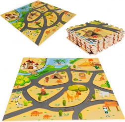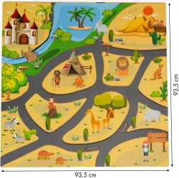Een kleurrijke schuimrubberen speelmat met safarimotief creëert een veilig en speels plekje voor dagelijks plezier. De delen passen in elkaar als een puzzel, zodat je eenvoudig elke gewenste vorm maakt. De mat is van gecertificeerd EVA-materiaal, heeft een antisliptextuur en een comfortabele dikte van 0,9 cm die vallen dempt en tegen kou isoleert. Makkelijk schoon te maken – gewoon afnemen met een vochtige doek, veilig voor kinderen en ideaal om te spelen, kruipen en de eerste stapjes te zetten.