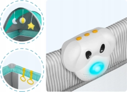 De veiligheid wordt vergroot door het LockGuard-systeem, dat onbedoeld inklappen voorkomt, en het muggennet voor een rustige slaap. Verder inbegrepen zijn een verschoontafel, een zij-organizer met 3 vakken en handgrepen om opstaan te oefenen. De hoogwaardige, zachte onderlegger is slijtvast; de SGS-certificering bevestigt dat aan EU-normen wordt voldaan.