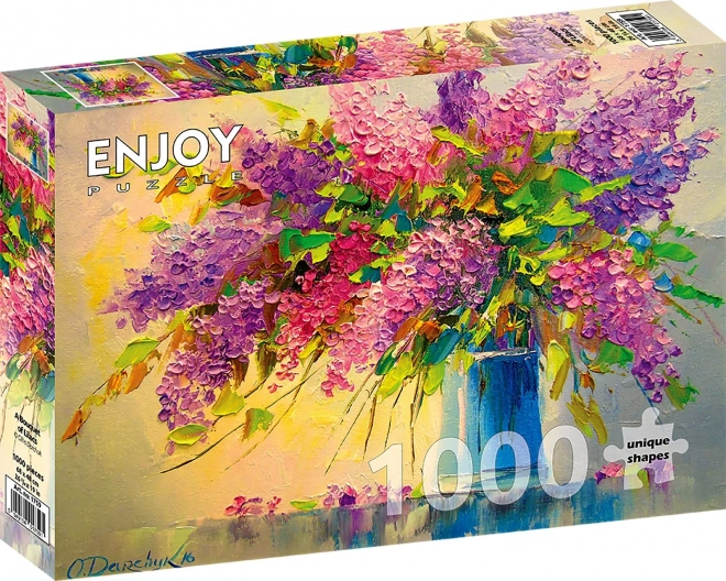 Het elegante motief van een seringenboeket zal liefhebbers van bloemen en iedereen die op zoek is naar rustgevend puzzelplezier bekoren. Dankzij 1000 precies gesneden stukjes geniet je van vloeiende aansluitingen en een prachtig eindresultaat met een afmeting van 68 × 48 cm.