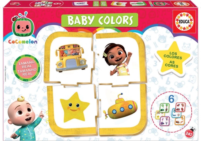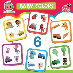 Leuke kinderpuzzel met motieven uit de populaire serie COCOMELON helpt kinderen kleuren herkennen en ontwikkelt fijne motoriek, aandacht en verbeeldingskracht. De set bevat 6 puzzels van 4 stukjes in de kleuren rood, geel, groen, blauw, oranje en paars.