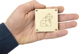 Na montage is het spel circa 6 × 6 × 1,2 cm en past dus in je zak of reistas.