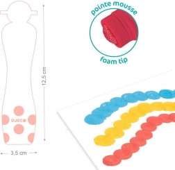 DJECO schuimverf met een handige sponsapplicator is de ideale keuze voor de eerste knutselprojecten. Kinderen drukken simpelweg en maken stippen, strepen en patronen – zonder kwasten en zonder rommel. De ergonomisch gevormde flesjes passen ook in kleine kinderhandjes en ondersteunen een natuurlijke greep.