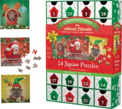 Ontdek elke decemberdag een nieuwe, schattige hondenillustratie in winterse en feestelijke sfeer. Elke vierkante puzzel heeft 50 stukjes en meet na het leggen 12,5 × 12,5 cm – het ideale formaat voor een korte maar leuke puzzelpauze. Aan de achterkant van elk laadje vind je een voorbeeldafbeelding om het leggen te vergemakkelijken.