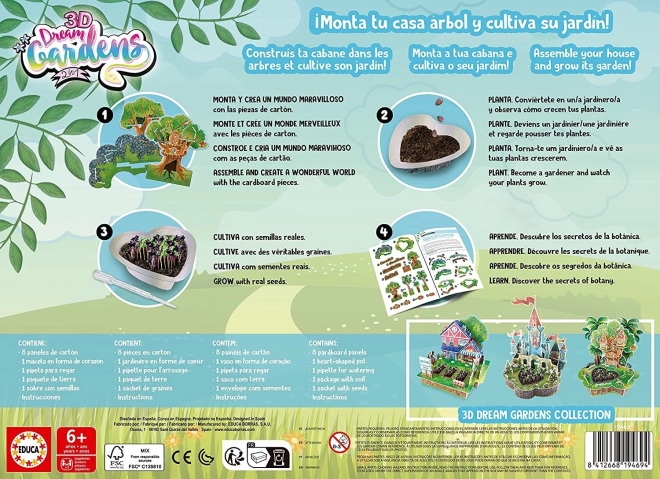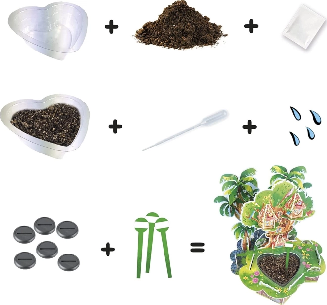 Deze speelse 2-in-1 set combineert het bouwen van een 3D-decoratie met eenvoudig kweken. Kinderen zetten een schilderachtige boomhut in elkaar en zaaien zaadjes in de hartvormige bloempot, waar ze vervolgens voor zorgen. Elke dag zien ze kleine vooruitgangen, verzinnen verhalen en leren verantwoordelijkheid en geduld.