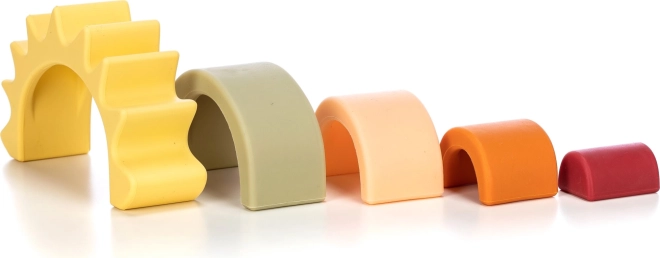 Het siliconen stapelspeelgoed Zonnetje brengt kinderen plezier in ontdekken en stapelen. Vijf kleurrijke boogdelen ontwikkelen de oog-handcoördinatie, ondersteunen logisch denken en stimuleren zelfstandig spelen. Het zachte, veilige materiaal is vriendelijk voor kinderhanden en bestand tegen dagelijks gebruik.