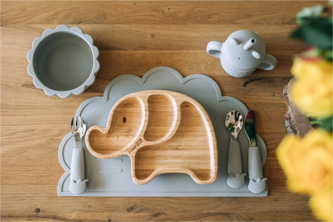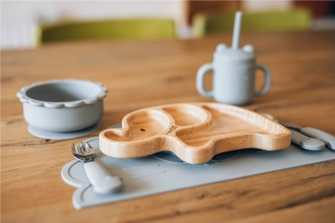 Siliconen antislip onderlegger Leeuw in grijs. Vrij van BPA, PVC, latex en ftalaten, geschikt voor allergiepatiënten. Makkelijk schoon te maken, vaatwasmachinebestendig.