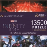 Een verbluffende puzzel die de avonturen van de helden uit het Marvel-universum afbeeldt. Elke afbeelding is afzonderlijk verpakt (9x1500 stukjes). Dankzij de TREFL Unlimited Fit Technology (UFT), die het mogelijk maakt afzonderlijke afbeeldingen met elkaar te verbinden, kun je een willekeurige compositie maken of de opstelling volgens het voorbeeld volgen.