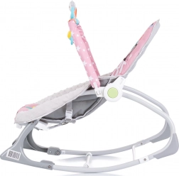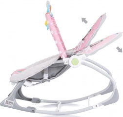 CHIPOLINO Baby Spa is een praktisch babywipstoeltje dat met je kleintje meegroeit. Dankzij de 2-in-1-oplossing dient het eerst als wipstoeltje voor pasgeborenen (tot 9 kg) en later als stoeltje voor zelfstandig zittende kinderen (tot 18 kg). Zachte vibraties en muziek kalmeren en helpen je kind te ontspannen, terwijl de speelboog met hangende speeltjes de visuele en motorische coördinatie stimuleert.