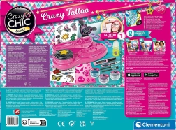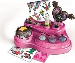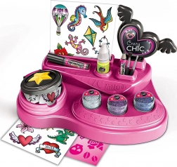 Ontdek de leuke wereld van creativiteit met de meisjesset CRAZY CHIC voor tijdelijke tatoeages. Dankzij de rijke uitrusting – zelfklevende sjablonen, kleurrijke glitters en bodyverf met lichtgevend effect – creëer je een originele look voor elke gelegenheid. De praktische werktafel houdt alle tools bij elkaar en maakt het aanbrengen eenvoudig.