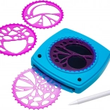 Inhoud van de verpakking: LCD Spirograph, 4 Cyclex-wieltjes opgeborgen in een compartiment, dubbelzijdige stylus, handleiding. Voeding: 2× AAA-batterijen (niet inbegrepen).