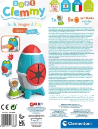 Ontdek een speelse wereld met de Soft CLEMMY set – een zachte sensorische box in de vorm van een ruimteraket met 5 kleurrijke blokken en een schattige beer-astronaut. Dankzij het zachte, veilige en wasbare materiaal is hij ideaal voor de allerkleinsten en bevordert hij fijne motoriek, zintuiglijke waarneming en fantasie tijdens het spelen thuis en in bad.