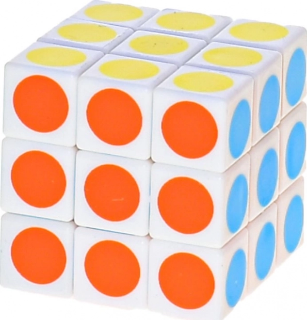 Deze compacte puzzelkubus met gekleurde stippen biedt een frisse, speelse variant op de klassieke rubiks. Dankzij de soepele draai en helder gekleurde cirkels is de kubus perfect voor snel oplossen en ontspannende momentjes tussendoor.