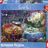 Duik in een fantastische afbeelding waarin vier uiteenlopende werelden samenkomen. Het merk Schmidt staat bekend om zijn hoge afwerkingskwaliteit, waardoor de stukjes precies in elkaar passen en de kleuren mooi verzadigd zijn. De gelegde puzzel met afmetingen van circa 69,3 × 49,3 cm is perfect om in te lijsten.