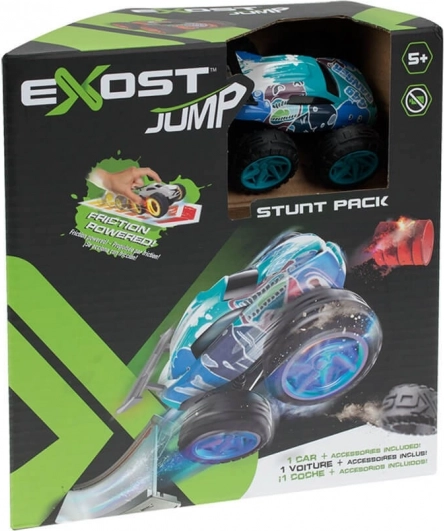 De Exost Jump speelset met autootje bevat een 3-in-1 stunthelling, obstakels en een autootje dat je met een lichte druk naar voren kunt opladen voor hogesnelheidstrucs. Er zijn drie verschillende ontwerpen van stadsauto’s (SUV, racer, flip) in zes kleuren beschikbaar.