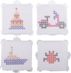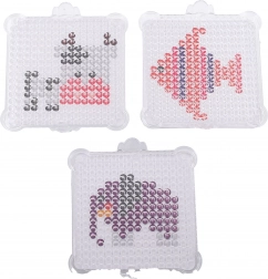De magische kralen mix is ideaal voor de ontwikkeling van creativiteit, fijne motoriek en geduld. Kinderen leggen een afbeelding met de kralen volgens het sjabloon, besproeien deze licht met water en na het drogen blijft het kunstwerk stevig bij elkaar. Eenvoudig, schoon en veilig knutselen zonder lijm.