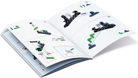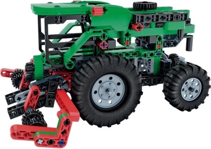 In de doos vind je meer dan 200 hoogwaardige onderdelen: assen, hefboompjes, stangen, panelen, banden en velgen, tandwielen en een compleet differentiëel. Twee gekleurde geïllustreerde handleidingen bieden duidelijke bouwinstructies en leggen bovendien de principes van de mechanica van landbouwmachines uit, zodat leren spelenderwijs gebeurt.