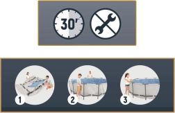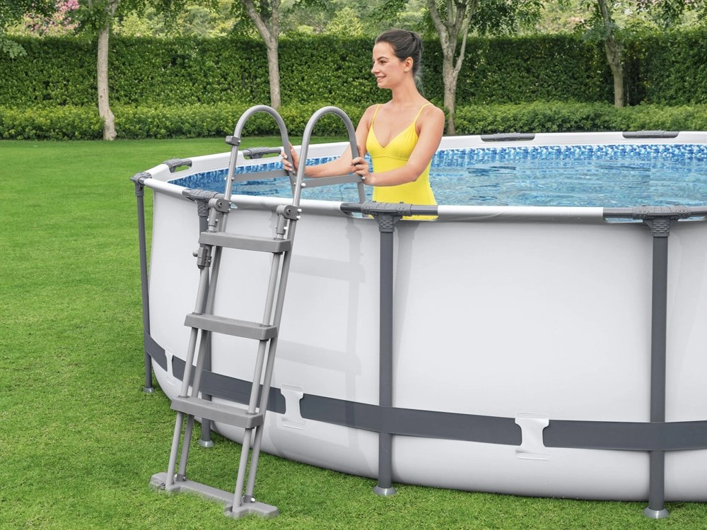 De afneembare ladder verhoogt de veiligheid doordat spontane toegang door kinderen zonder toezicht kan worden voorkomen. De filterpomp met cartridge (type II) houdt het water schoon, terwijl afvoerkleppen met doorstroomregeling het snel leeglaten na het seizoen vergemakkelijken. Eenvoudige montage, een stabiele constructie en uitgebreide accessoires maken dit de ideale oplossing voor zwemmen met het gezin in de tuin.