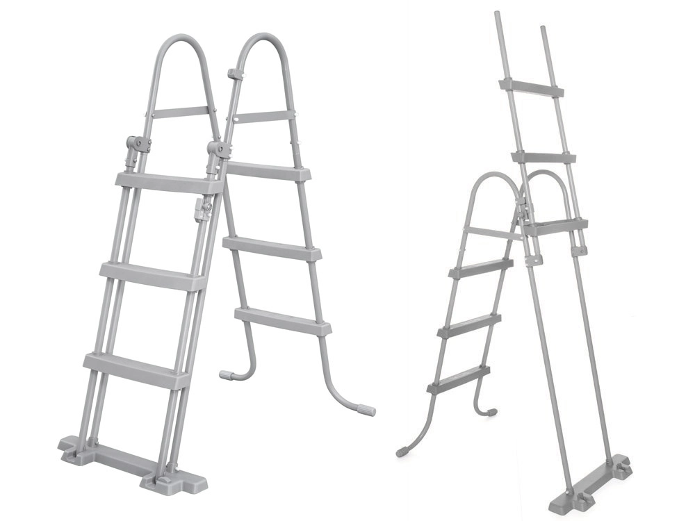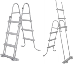 Inclusief filterpomp met cartridge type II, slangen en klemmen, zeefjes, doppen, reparatiepatch en een veilige afneembare ladder.