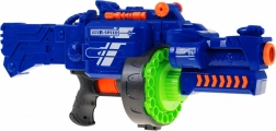 De halfautomatische BLAZE STORM blaster biedt dynamisch maar veilig speelplezier voor jong en oud. De elektrische compressor op 5 AA-batterijen vuurt tot 3 pijltjes per seconde, de trommel bevat 20 pijltjes en het bereik is ongeveer 10 meter. Dankzij de ON/OFF trekkervergrendeling en anti-vastloopbescherming verloopt het spel soepel en zorgeloos. Twee stabiliserende rollen in de loop helpen bij nauwkeuriger schoten en de inklapbare kolf vergemakkelijkt laden en handling.