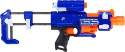 Blaze Storm is een betrouwbare schuimblaster in blauw-oranje uitvoering die elke jonge fan van actiegames zal bekoren. Dankzij de automatische elektrische aandrijving op 3× AA-batterijen en het voorladen genieten kinderen van soepel en veilig speelplezier. De laserzoeker (2× LR44 meegeleverd) helpt nauwkeurig richten, terwijl het venster voor het verwijderen van vastgelopen munitie een probleemloze werking garandeert.