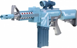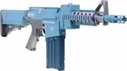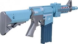 De elektrische compressor, gevoed door 5× AA-batterijen (niet inbegrepen), zorgt voor soepel, volautomatisch vuren – druk simpelweg de trekker in en elke druk lost één schot. Voor kinderveiligheid kan de trekker worden geblokkeerd met de ON/OFF-schakelaar. De lange loop met geleiderollen stabiliseert het schot voor meer precisie.