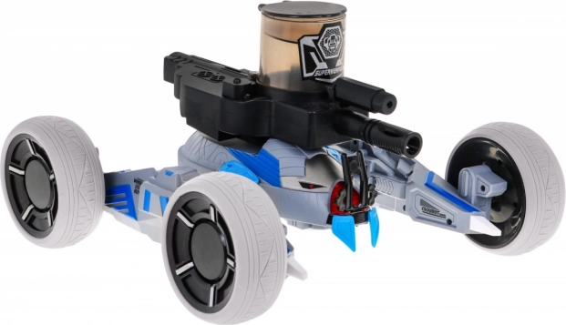 Grote rubberen wielen met antislipprofiel en functionele schokdempers garanderen een soepele rit binnen en buiten. Het geïntegreerde treffersensorsysteem registreert hits – na de derde treffer schakelt het voertuig uit en moet het opnieuw worden gestart, wat spanning en eerlijke spelregels toevoegt.