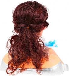 Lange bruine lokken maken kammen, vlechten en feestelijke kapsels mogelijk. Ideaal om fijne motoriek en fantasie te trainen.