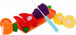 Potten, pannen, keukengerei, klittenband-voedsel, kruiden en een krijtbord met krijtje en spons. Inclusief een leuke eierkoker met licht en geluid.