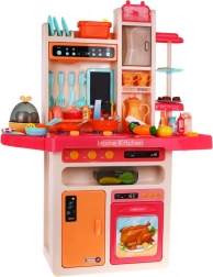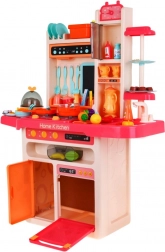 Grote multifunctionele kinderkeuken voor een realistisch kookspel dankzij stromend water uit de kraan, licht- en geluidseffecten en een interactieve brander met stoom. Inclusief 65 accessoires, waaronder een koelkast, oven, gootsteen, krijtbord en een leuke “eierkoker”. Ideaal voor kinderen vanaf 3 jaar.