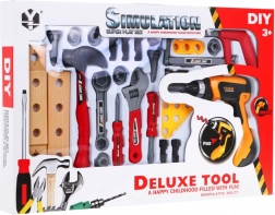 Complete kindergereedschapsset voor kleine doe-het-zelvers vanaf 3 jaar met 26 onderdelen voor realistisch klusspel. Inclusief een interactieve accuboormachine op batterijen, sleutels, hamer, schroevendraaiers, zaagje, schroeven en koppelstukken. Dankzij het realistische design en de geluiden tijdens het schroeven ontwikkelen kinderen hun fijne motoriek, creativiteit en technische vaardigheden.
