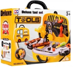 Praktisch koffertje dat het kinderen makkelijk maakt om de gereedschapsset op te bergen en te verplaatsen. Licht en eenvoudig mee te nemen, met een schoolbus-design.