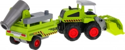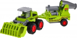 Deze landbouwlader met aanhanger is geweldig vermaak voor kinderen die van landbouwmachines houden. Functies van de lader met aanhanger en sproeier: