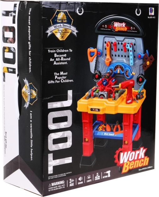 De kinderwerkplaats met motor biedt een breed scala aan gereedschappen die de handvaardigheid, verbeelding en creativiteit van je kinderen perfect ontwikkelen. De set bevat een door batterijen aangedreven motor met realistische geluiden en lichteffecten, die elke kleine enthousiasteling fascineert.