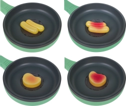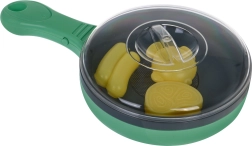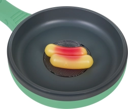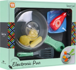 De interactieve kinderbraadpan met bakfunctie is ontworpen voor kinderen vanaf 3 jaar. Deze speelse keuken set bootst echt koken na met bakeffecten en veranderende kleuren van voedselattributen. Drie blauwe LED’s in het midden van de pan simuleren verwarmen, en zodra het eten 'gebakken' is, gaan de LED’s uit.