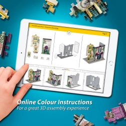 Ontdek realistische details van iconische winkels uit het magische Londen in een robuuste 3D-puzzel die uitstekend blijft zitten dankzij slim gevormde stukjes. Je bouwt de puzzel aan de hand van referentieafbeeldingen en een duidelijke geïllustreerde handleiding – zonder lijm en zonder gereedschap.