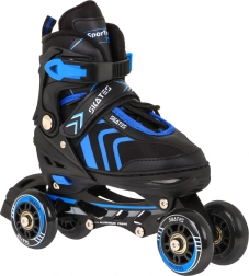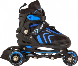 Universele 4-in-1 kinderset voor het hele jaar: inlineskates, ijsschaatsen en een verwisselbare configuratie in één. Dankzij 5-traps verstelbaarheid (34–38), een aluminium frame, PU-wielen 70×24 mm met hardheid 85A en ABEC-7-lagers biedt hij een soepele rit en stabiliteit. Comfort wordt gegarandeerd door de half-harde constructie, ventilatie en een zachte EVA-schuim inleg met Velvet-materiaal.