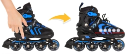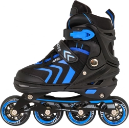 Universele 4-in-1 set voor kinderen combineert inline skates, ijsschaatsen en een quad-variant in één. Dankzij de 5-traps maatverstelling (39–43), het aluminium frame, PU-wielen 72 mm / 85A en ABEC-7 lagers biedt hij een soepele rit en een lange levensduur. Het comfort wordt gewaarborgd door de halfzachte schoen met ventilatie, de geprofileerde EVA-inlegzool en de driedubbele sluiting voor een veilige pasvorm.