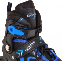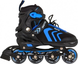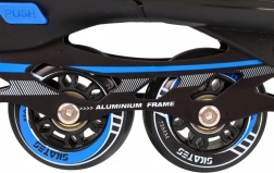 Het aluminium onderstel, ABEC-7 lagers en polyurethaan wielen 72×24 mm met hardheid 85A garanderen een soepele en snelle glij en betrouwbare wendbaarheid. De driedubbele sluiting – veters, klittenband en een gesp met vergrendeling – houdt de voet stevig op zijn plek. De rechter skate is uitgerust met een rem voor veilig stoppen.