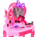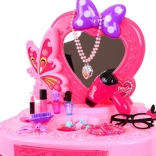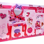 De strik boven de hartvormige spiegel licht op en knippert, begeleid door een melodie. Kinderen beleven zo een realistisch en betoverend spelletje beautysalon.