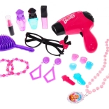 - Kaptafel, kruk, föhn, bril, kam ca. 12 × 7 cm, ketting, 2× armband, 4× ring ca. 2,5 × 2,5 cm, 2× haarspeld ca. 4 × 2 cm, imitatie lippenstift ca. 6,5 × 1,5 cm, 3× flesje ca. 7,5 × 3 cm, hanger met prinses ca. 4 × 3 cm, 2× oorbel, stickers
